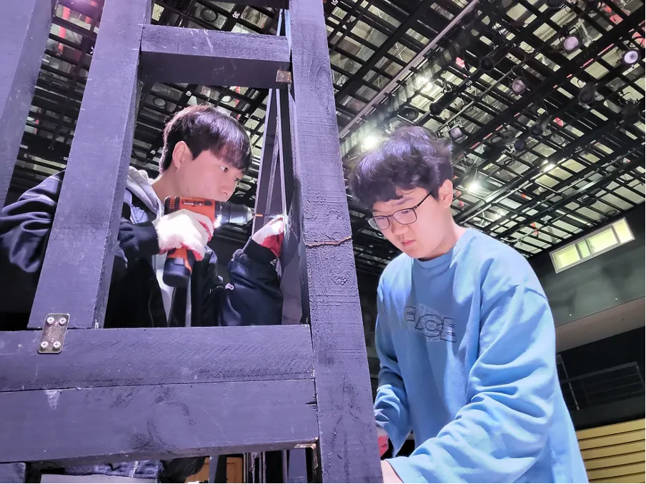 무대부는 말 그대로 무대를 구상하고 만드는 역할을 맡습니다. 연출과 미술감독이 머리를 맞대고 극의 분위기를 살리기 위한 무대 구성을 고민해내면, 무대부가 이를 구현해냅니다. 무대의 설계부터 목재 가공, 설치, 해체까지. 배우들의 열연은 이를 뒷받침해주는 아름다운 무대 덕분에 빛을 발합니다. 무대부 모두가 목장갑을 끼고 목재에 옹기종기 모여 있는 모습은 그야말로 대학의 낭만을 담은 앨범의 한페이지만 같습니다.