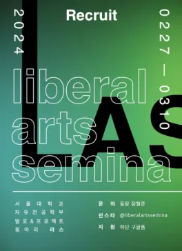 LAS(Liberal Arts Seminar)는 자유전공학부 소속의 발표 & 프로젝트 동아리로, 2011년 개설되어 자유전공학부의 역사와 함께 꾸준히 활동을 이어온 동아리입니다. LAS는 자유전공학부의 설립 취지에 부합하게, 다양한 전공을 지닌 학우들이 모여 각자 자신이 관심 있는 주제에 대해 발표하고, 전공 선택에 대한 고민이나 다양한 경험(해외 교환학생 프로그램, 인턴십, 학부 연구생 등)을 공유하며, 자유전공학부 학부생 사이에 활발한 정보 교류 및 친목 도모의 장이 되어 왔습니다.