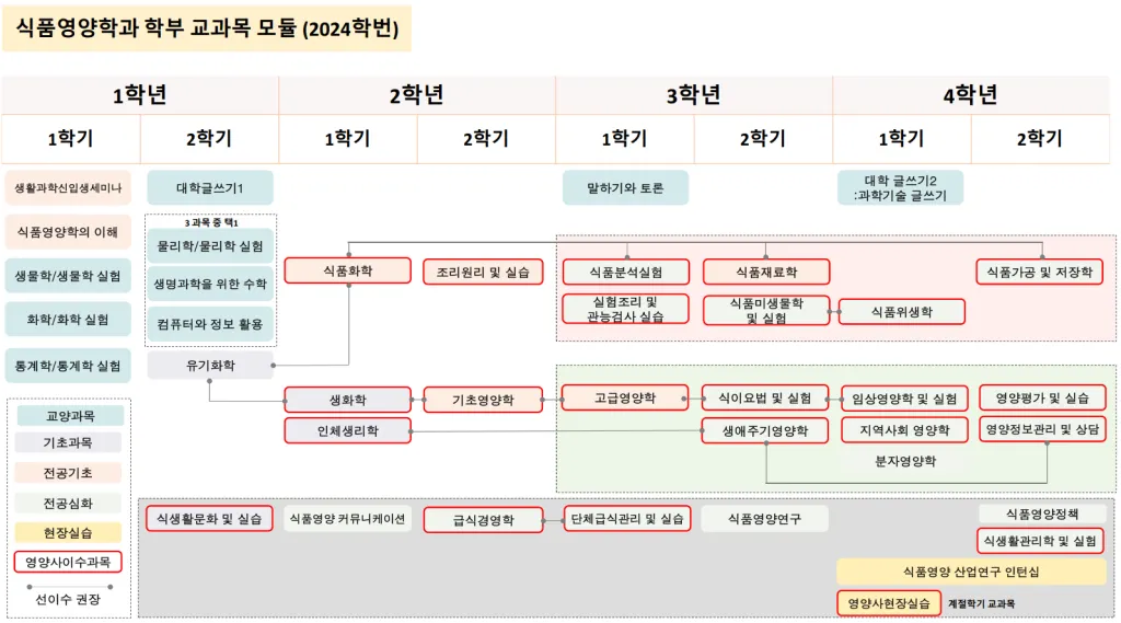 [출처] 식품영양학과 홈페이지 > 학부안내 > 교과과정 > 교과과정 https://foodnutrition.snu.ac.kr/교과과정-2/#none (검색일: 2024년 7월 10일)