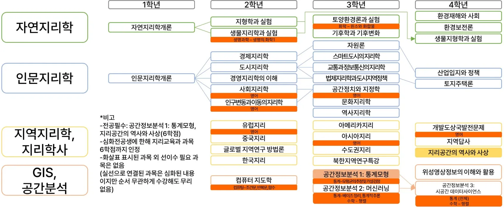 [출처] 서울대학교 기초교육원 공식 홈페이지 > 교육·학생지원 > 예비대학 > 예비대학 수강가이드 > 지리학과 https://ctl.snu.ac.kr/didimdol/social_geo.html (검색일: 2024년 7월 18일)