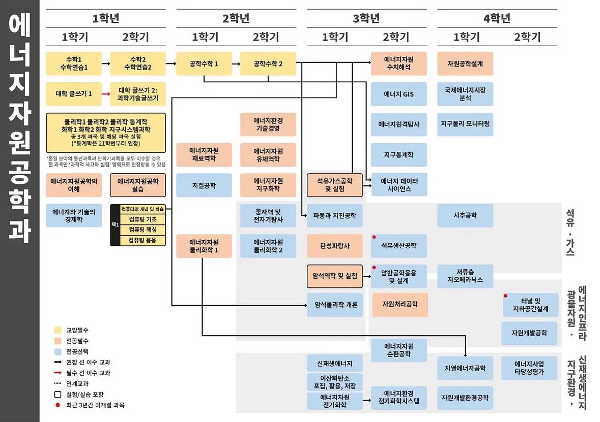 [출처] 서울대학교 공과대학 학생회 공식 인스타그램 > 공과대학 전공로드맵 ver. 2023 게시 > 에너지자원공학과 (검색일: 2024년 7월 13일)