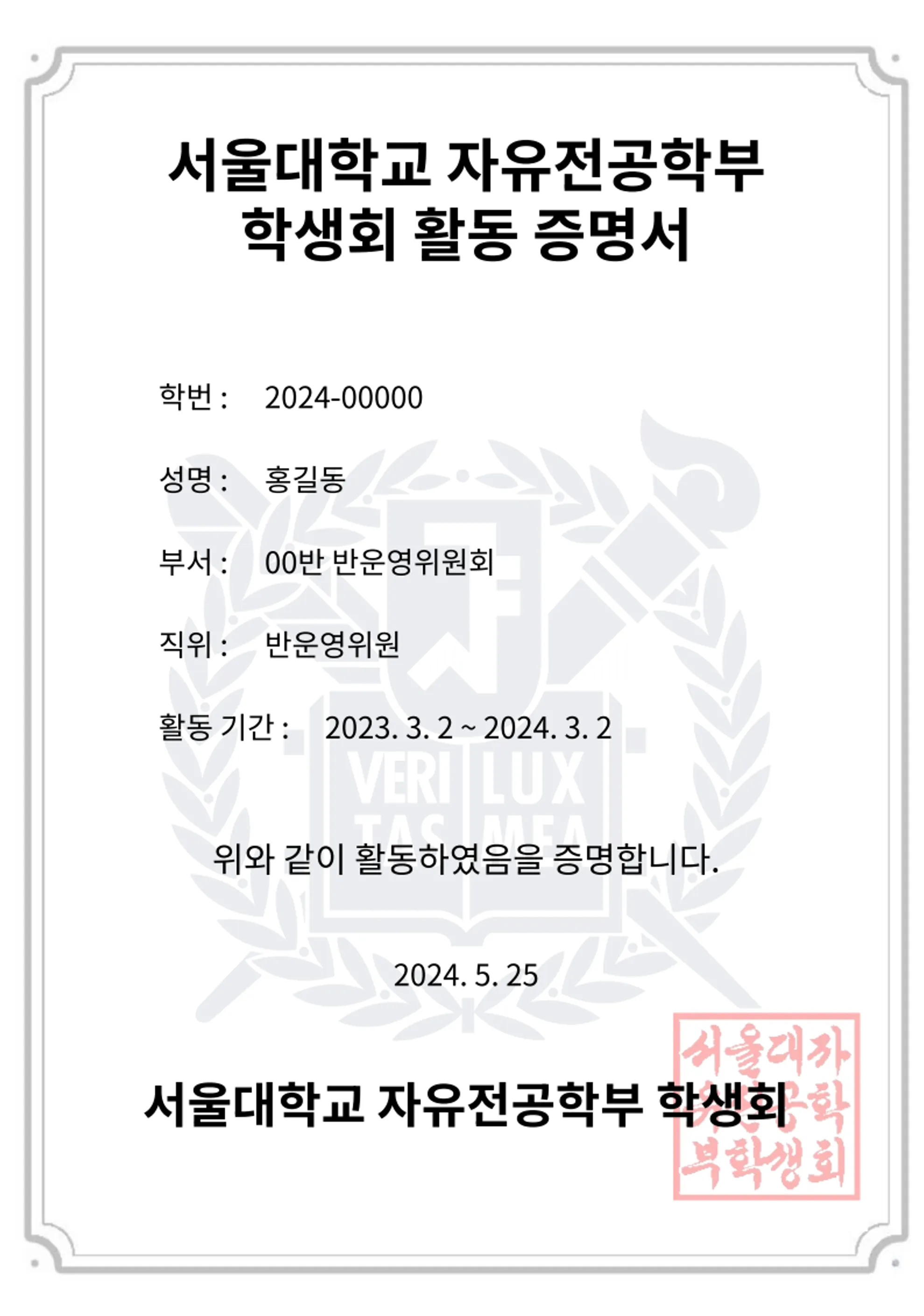 활동 증명서 예시