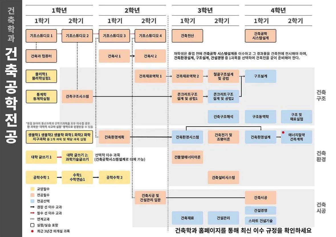 [출처] 서울대학교 공과대학 학생회 공식 인스타그램 > 공과대학 전공로드맵 ver. 2023 게시 > 건축공학전공 (검색일: 2024년 7월 13일)