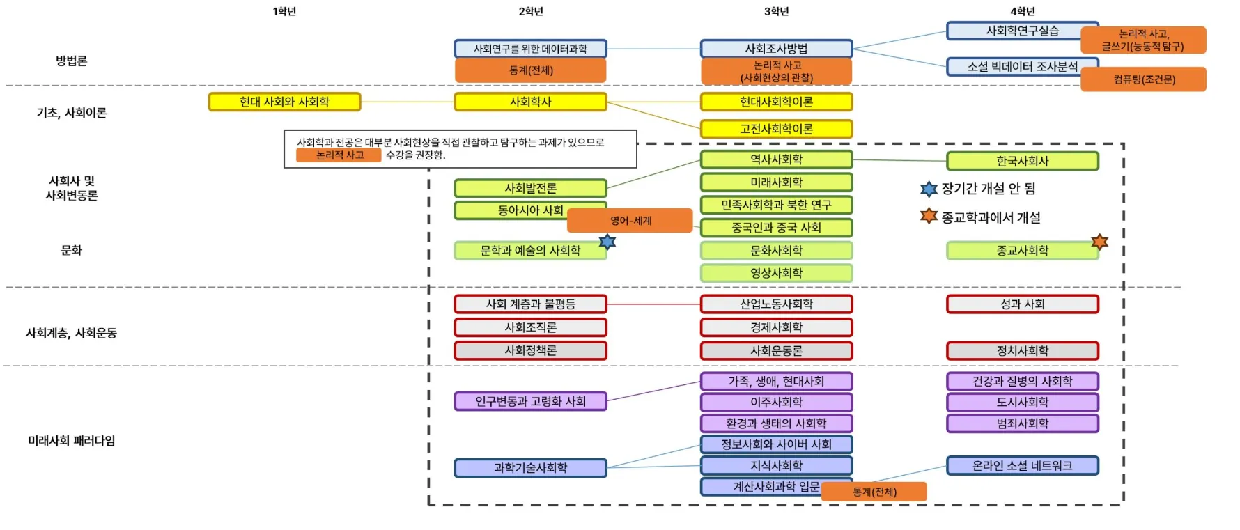 [출처] 서울대학교 기초교육원 공식 홈페이지 > 교육·학생지원 > 예비대학 > 예비대학 수강가이드 > 사회학과 https://ctl.snu.ac.kr/didimdol/social_social.html (검색일: 2024년 7월 18일)