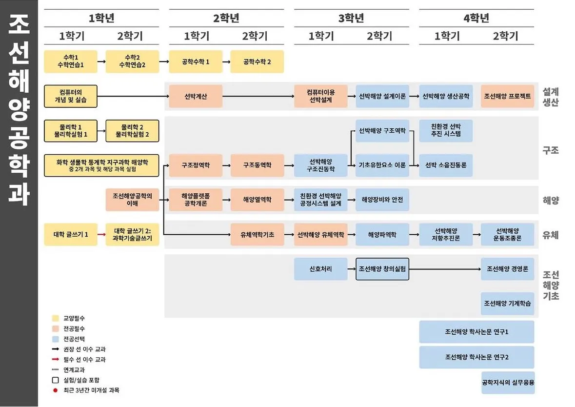 [출처] 서울대학교 공과대학 학생회 공식 인스타그램 > 공과대학 전공로드맵 ver. 2023 게시 > 조선해양공학과 (검색일: 2024년 7월 13일)
